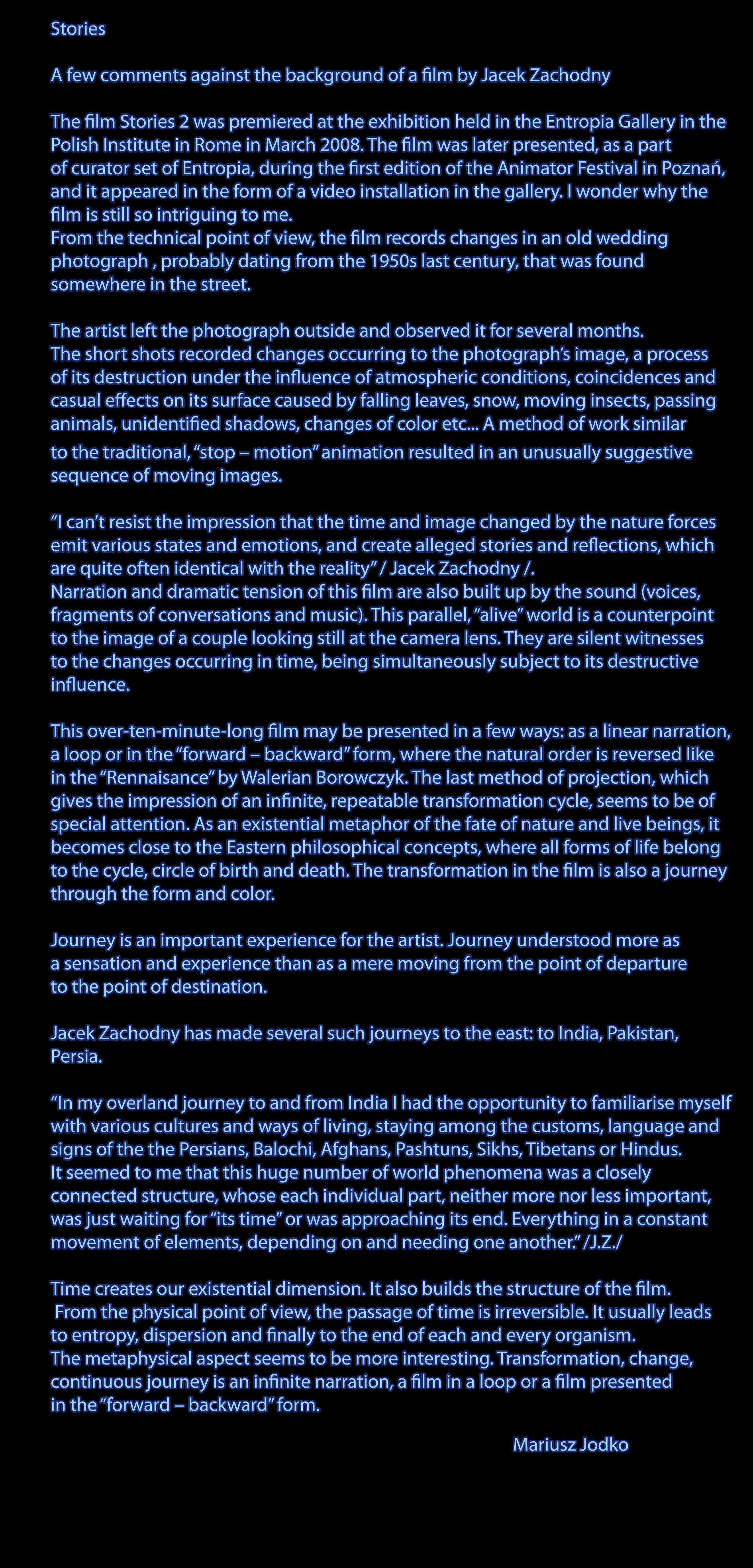 20072022 Historie (Stories) STORIES IIwideo, animacja / video, animation 14:45wideo kadry / wideo frames STORIES Iwideo, animacja /video, animation 12:00muzyka/music by David Szczęsny, Ignaz Schickkadry wideo/video frames Podziel się: Kliknij, aby udostępnić na X (Otwiera się w nowym oknie) X Kliknij, aby udostępnić na Facebooku (Otwiera się w nowym oknie) Facebook Lubię Wczytywanie… Powiązane